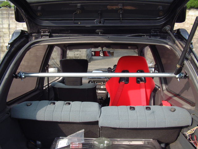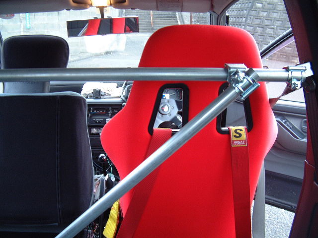 H15/07/27 Cピラーバーとリヤシート背もたれの取り付け部分を繋ぎました。本来ならCピラーにもう1本バーを追加すべきでしょうが、