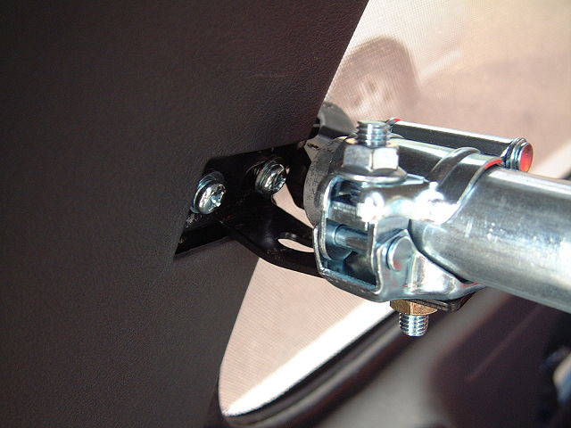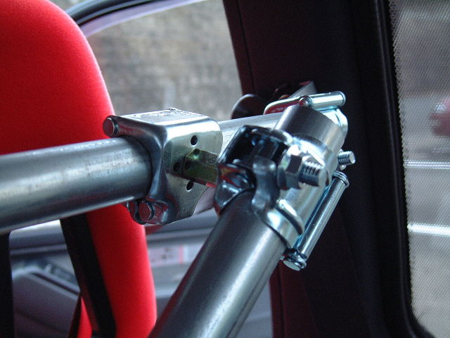 ↓Cピラーとの固定は、直角に2本のパイプを繋ぐジョイントを使っています。