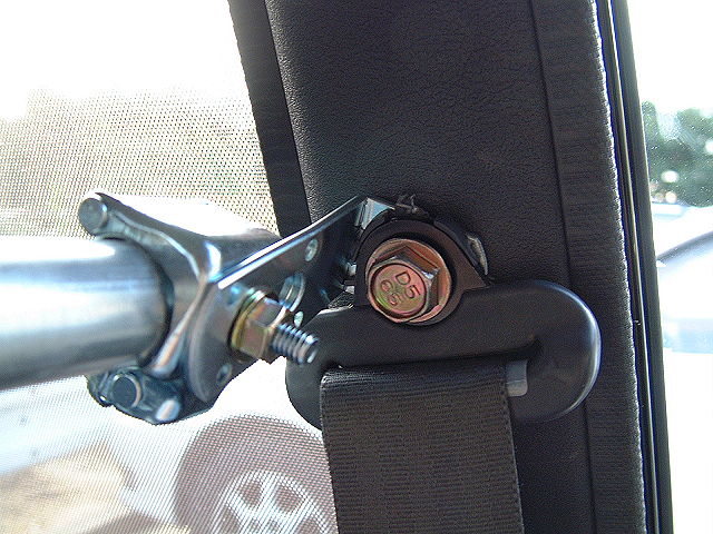 ↓後部座席から撮影。シートベルトを固定しているボルトを利用しています。